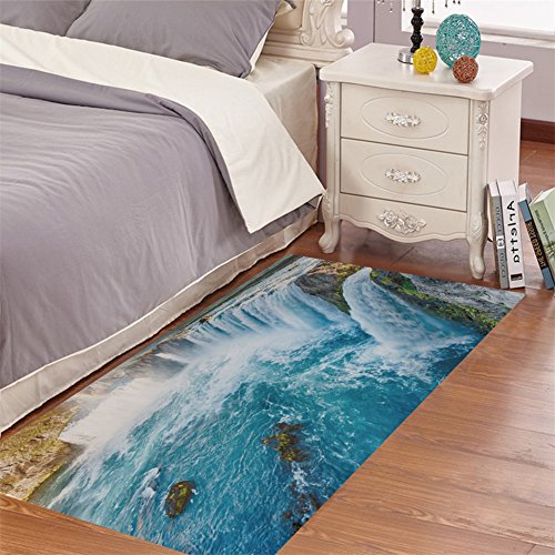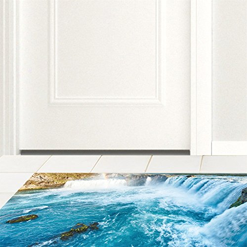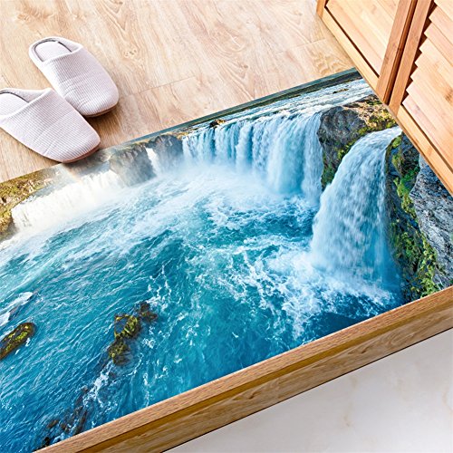 3D Floor Wall Sticker Removable Creative Waterfall Mural Decals Vinyl Anti-slip Waterproof Art For Living Room Bathroom Decoration,47.2x23.6"