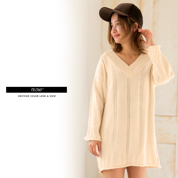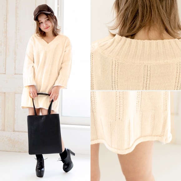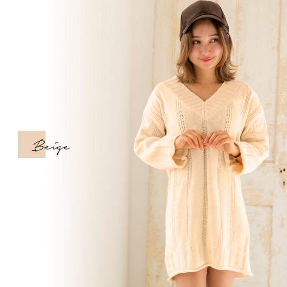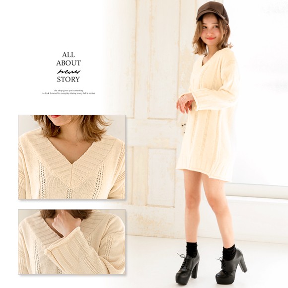 ◆商品紹介◆ ゆるっとしたデザインが女の子らしいVネックニットワンピ★ ニーハイブーツと合わせて女性らしく、スニーカーと合わせてカジュアルに★シンプルなデザインなので合わせるアイテムを選ばず着まわせます♪ ◆素材感・サイズ感◆ 柔らかいニット素材[素 材]アクリル100% [伸 縮]若干あり[透け感]若干あり[裏 地]なし◆モデル◆・身長153cm・フリーサイズ着用 ※お客様の体型や身長により写真のモデルとの着用感に多少の違いが出る場合がございます。◆サイズ◆※サイズ詳細は平置きで測った際のサイズとなっておりますので多少の誤差(約2-3cm)は予めご了承下さい。総丈:約75cm 肩幅:約50cm 袖幅:約34cm 袖丈:約40cm バスト:約100cm 袖口:約28cm ウエスト:約100cm ヒップ:約102cm ※画像の色味はお使いのパソコンやスマートフォン等モニター環境により実際の色味とは若干異なる場合がございます。