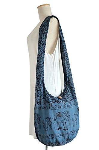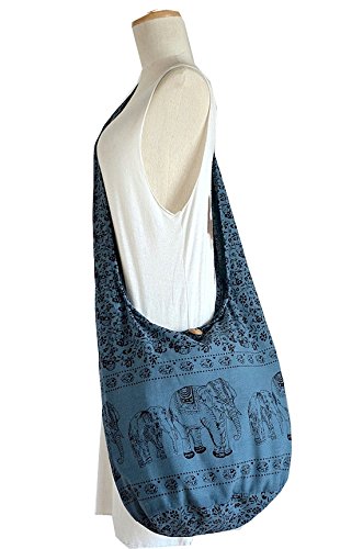 -. Title : Stripes Elephants Cool Blue Grey Purse Bohemian Style Hippie Hobo Sling Cross body