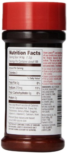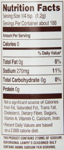LAWRY'S Seasoned Salt, Less Sodium, 8-Ounce (Pack of 6)