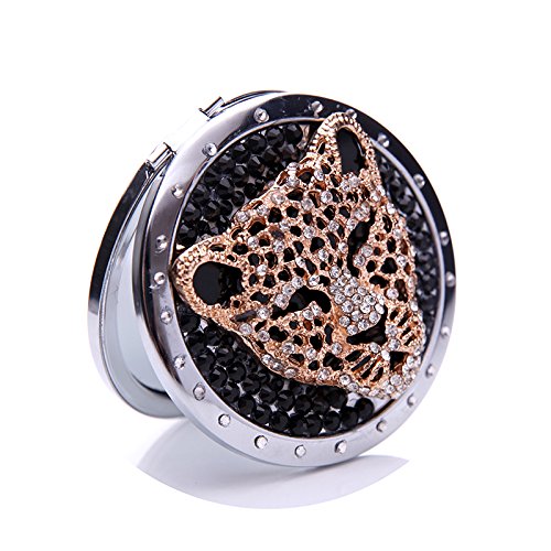 Generic 3D Handmade Magnified Mirror for Women Make Up Mirror Black Panther Head Series Deep Forest Stainless Steel 2 Sides MakeUp