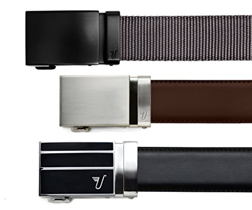 Good things come in threes and great things come in threes wrapped in an awesome gift box. The perfect gift for anyone with pants. The box is matte black and measures 9.5" x 6.5" x 5.5" with premium foil embossing and a magnetic closure. Once you receive your Premium Gift Box you can interchange the belts and buckles in the set. Bonus!