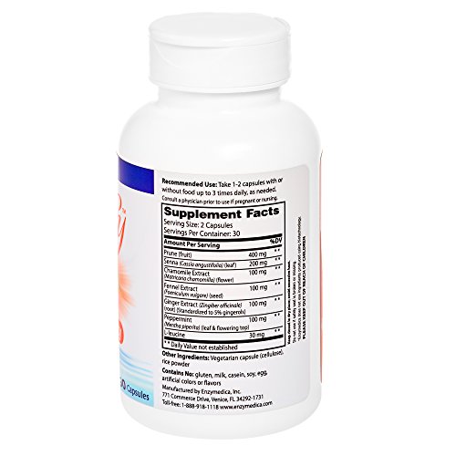 -. Binding : Health and Beauty -. Brand : Enzymedica -. EAN : 0814260027413 -. Feature : DOCTOR FORMULATED: Developed by one of the world's leading authorities in natural medicine, Dr. Michael Murray, N.D. / DUAL ACTION PRUNE: Prune extract provides both bulk to stool while decreasing transit time through the intestines / NATURAL ELIMINATION: Senna leaves are a laxative used to support occasional constipation / DIGESTIVE RELAXANT: Subtle but strong Chamomile extract has been shown to assist natural anti-inflammatory processes within the body / SOOTHING ADDITIONS: Fennel Extract, Ginger Extract and Peppermint Oil offer gentle non-stimulant support to assist regularity -. IsAdultProduct : 0 -. Label : Enzymedica -. Manufacturer : Enzymedica -. MPN : 10068 -. PackageQuantity : 1 -. PartNumber : 10068 -. ProductGroup : Health and Beauty -. ProductTypeName : HEALTH_PERSONAL_CARE -. Publisher : Enzymedica -. Studio : Enzymedica -. Title : Enzymedica - Purify, Daily Regularity, 60 count -. UPC : 814260027413