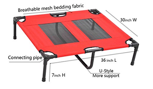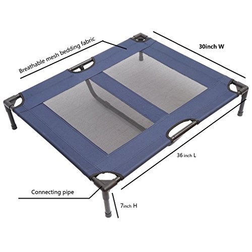 -. Feature : Great for sleeping/rest indoor or outdoor without on ground / Elevated pet 7inchs off the ground to protect your dog from dirty and bugs / Well ventilated for your pet throught breathable mesh fabric that keep your dog away mildew and mold. / Heavy-duty steelframe for extra support / Easy to instrall, storage and clean with soap and water