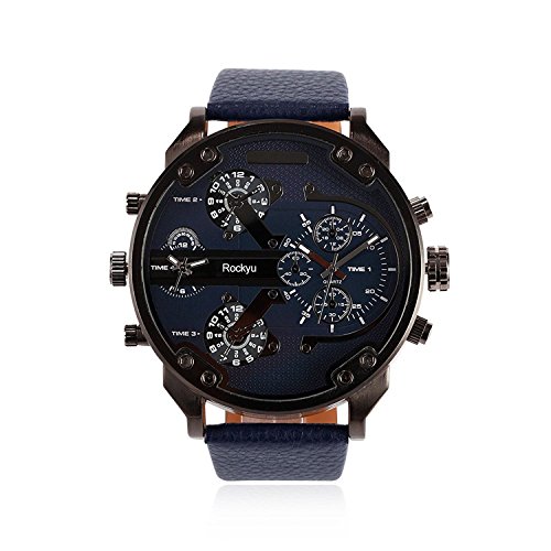 원본상품명: Rockyu ブランド 大きい 腕時計 メンズ レディ?ス 世界 サファイアガラス ブル? レザ? 革 バンド [?行輸入品]