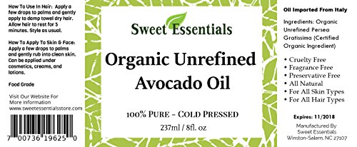 100% Pure Organic Cold-Pressed Unrefined Extra Virgin Avocado Oil - 8oz - FREE Pump included - Imported From Italy - Raw/ NON-GMO/ Green In Color