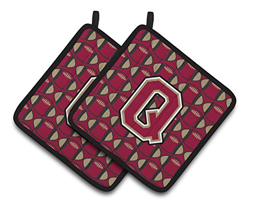 Caroline's Treasures Letter Q Football Garnet & Gold Pair of Pot Holders CJ1078-QPTHD, 7.5HX7.5W, Multicolor
