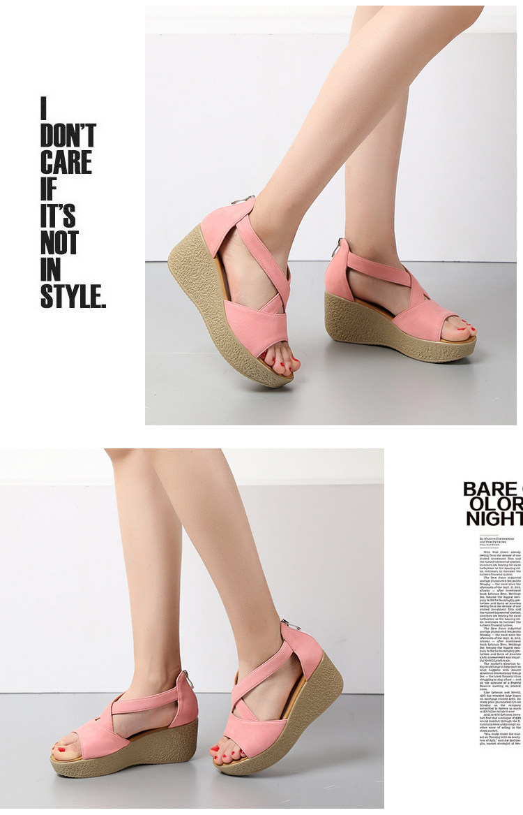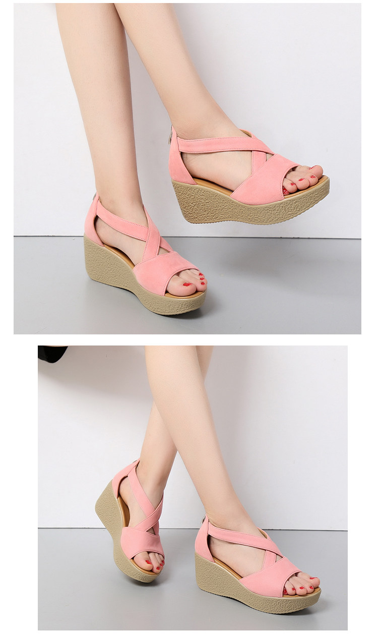 - 流行元素: 交叉绑带 镂空 坡跟 松糕跟 防水台 罗马风格