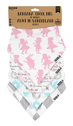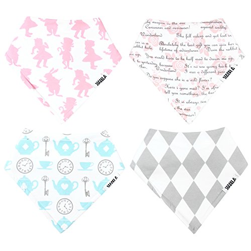 -. Title : Stadela Baby Bandana Bib Set, 4-Pack Absorbent Soft Cotton Drool and Teething Bandana Bibs, Baby Shower Gift for Girls "Alice in Wonderland"
