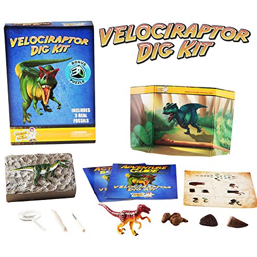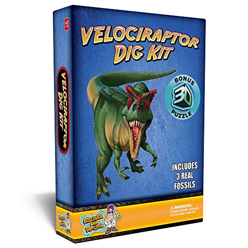 -. Binding : Toy -. Brand : Discover with Dr. Cool -. EAN : 0850442004674 -. Feature : BECOME A PALEONTOLOGIST - Excavate a genuine dinosaur bone, mosasaur tooth, and dino poop fossil and add them to your rock collection! / 3D VELOCIRAPTOR PUZZLE - Build a velociraptor action figure and display it in your dinosaur diorama (included) / EXCITING ARCHEOLOGY LESSON - This hands-on activity kit fosters a love of science while teaching children about fossils the fun way! / A HOMESCHOOL FAVORITE - A complete science kit that serves as the perfect stand-alone school project that boys and girls love! / 100% SATISFACTION GUARANTEE - Join the millions of parents who have chosen our award-winning science toys and experience the Discover with Dr. Cool difference! -. IsAdultProduct : 0 -. Label : Discover with Dr. Cool -. Manufacturer : Discover with Dr. Cool -. Model : PZVEL -. MPN : PZVEL -. PackageQuantity : 1 -. PartNumber : PZVEL -. ProductGroup : Toy -. ProductTypeName : TOYS_AND_GAMES -. Publisher : Discover with Dr. Cool -. Studio : Discover with Dr. Cool -. Title : Velociraptor Dinosaur Dig Kit –Excavate 3 Real Dino Fossils! -. UPC : 783318484020 -. Warranty : 30 day warranty against manufacturer defects
