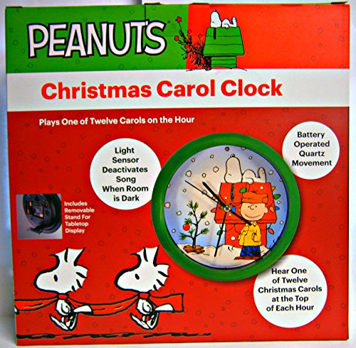 -. Feature : Colorful dial features snoopy, Charlie and his famous Christmas tree / Each hour is announced by one of twelve different Christmas carols / Light sensor deactivates Christmas carols at night