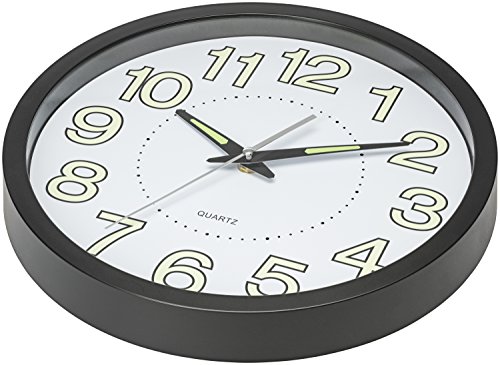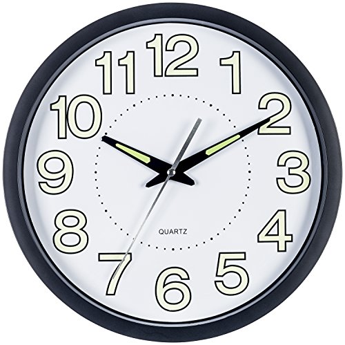 -. Title : Bernhard Products - Black Wall Clock Glow in The Dark 12-Inch Round Quartz Battery Operated, Large Numbers