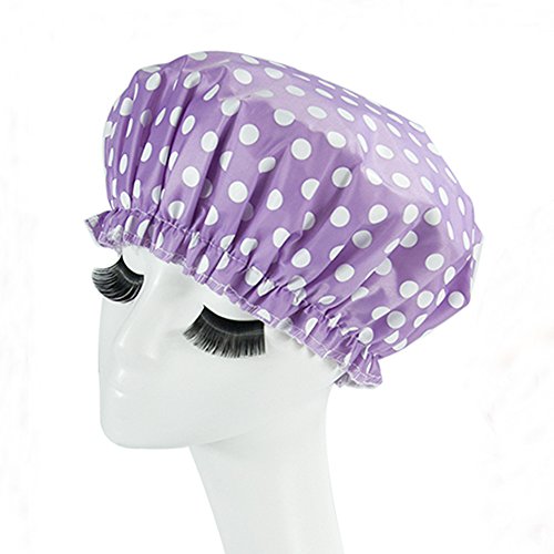 Eslite Waterproof Double Layers Shower Caps for Women,(Purple, White Dot)