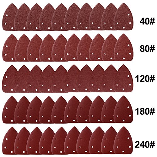 50pcs/set Triangle Sanding Sheets Pads Sandpaper with 5 Holes For Grinding Abrasive Tools Assorted 40 80 120 180 240 Grits