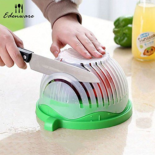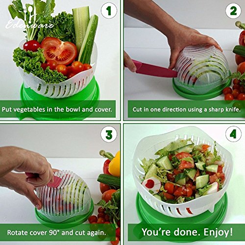 PRACTICAL & MULTIFUNCTION - The bowl can be used as a strainer, with which can wash your lettuce together, the pedestal can be used as a cut board, just sets them up for a perfect Cross cutting. Spin the strainer and slice your fruit or vegetable smaller.
