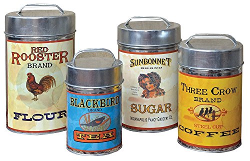 CWI Gifts Vintage Canisters Food Safe (Set of 4), 7.25"-10.25"