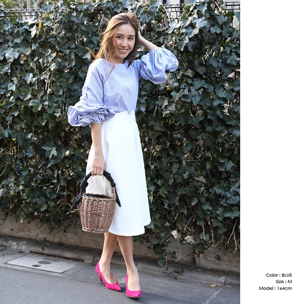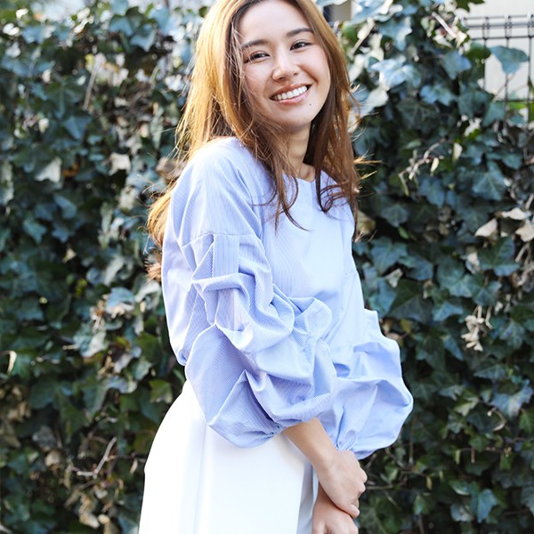 たっぷりのボリュームスリーブが印象的なブラウス。