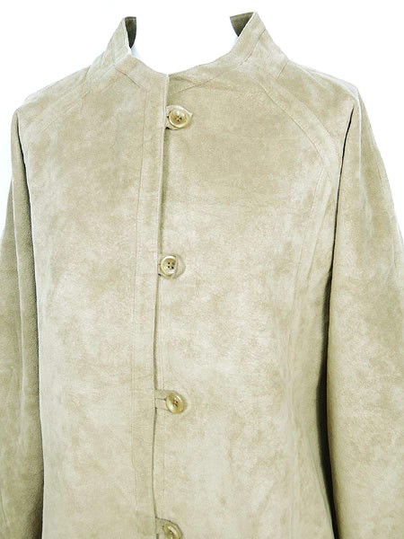 Ladies ブランド- カラーベージュ メール便不可 コンディション★★★ モデル- 素材記載なし 表記サイズ20 スタッフコメント裏地あり。第4裏地ボタン付け替え跡あり。スウェードのような質感です。 実寸サイズ 着丈 76 cm 身幅 65 cm 袖丈 67 cm ラグラン袖の為、襟元から袖先までの計測 ※ウエスト・ヒップ以外は平置き採寸
