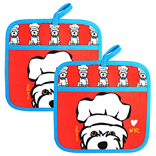 Marc Tetro Set of 2 Westie Pot-Holder Grabbers, Red and Blue