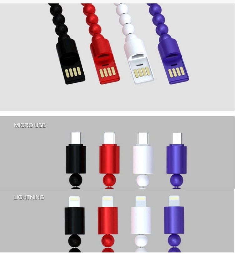 先端部分をつなぐと数珠ブレスレットとなるデータ転送・充電ケーブル