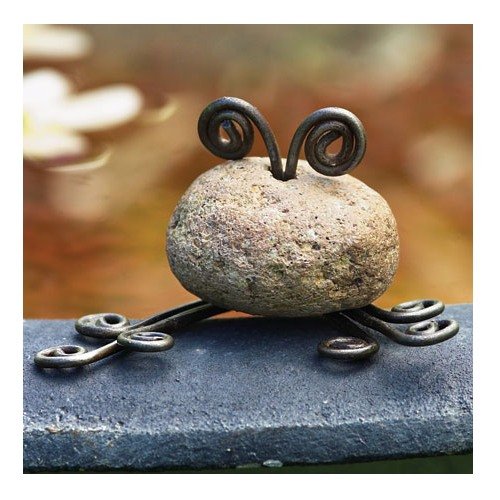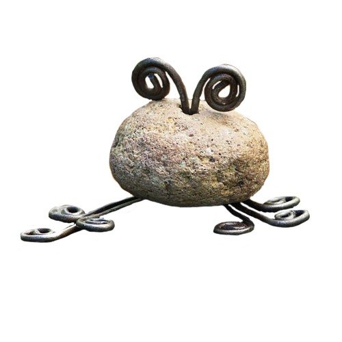 Ancient Graffiti Critters Mini Frog Natural River Stone with Wire
