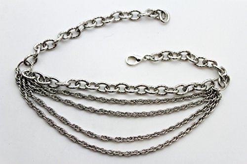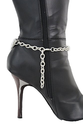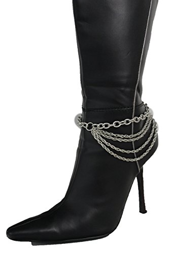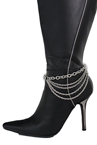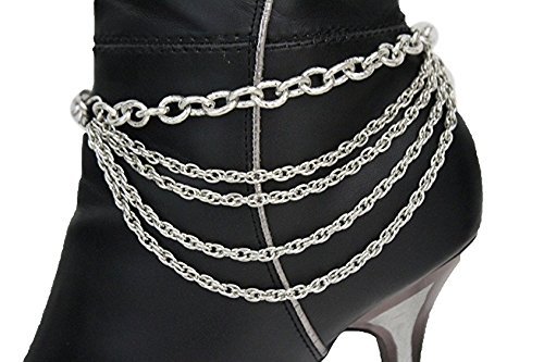 -. Title : TFJ Women Fashion Boot Bracelet Bling Metal Chains High Heels Shoes Multi Waves Links Charm Silver