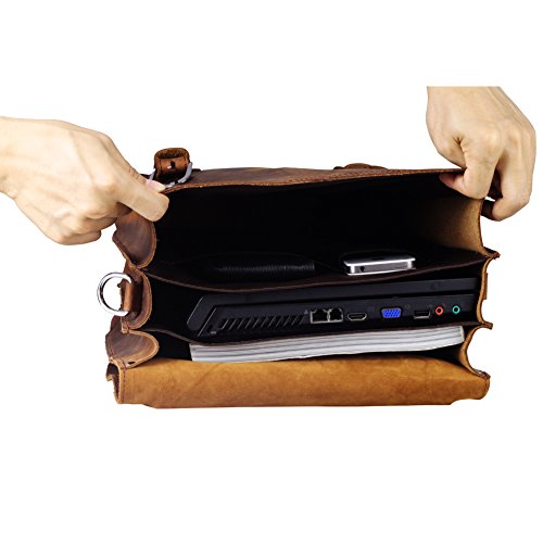 - Feature : 100% Brand new & High quanlity / Made by top Layer Crazy Horse leather and high quality nylon lining / Net weight: 1.9kg. Dimensions: 35*32*20 cm / 14*12.5*7.8 inch / This vintage looking leather bag is perfect for up to 14''laptop / You can take Tablet PC, A4 magazine, portable textbooks, clothing, wallet, cell phone and other small items to this cool briefcase