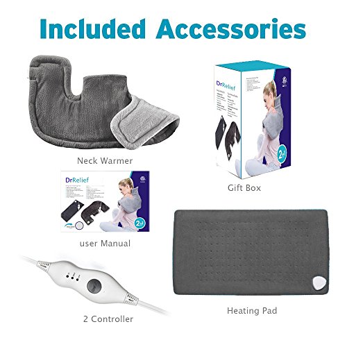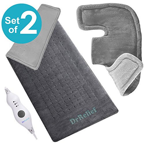 Studio : DrRelief Publisher : DrRelief Binding : Health and Beauty Product Description THERMOTHERAPY AT HOME Relax and Relief Neck Shoulder Heating Pad and XL Heat Therapy Pad come together in this heat therapy kit making it the perfect gift set. Heat therapy has been around for centuries used by the ancient Greeks and Egyptians to provide healing and relief from many types of pain. However, getting a massage or relaxing in a hot tub is not always practical. Having a heating pad handy can provide many of the same benefits. FAST RELIEF FROM ALL TYPES OF PAIN The plush microfibers of this deluxe heating pad set provide an effective home heat therapy solution for arthritic pain, stiff joints, spasm,sciatica, menstrual cramps, labor pain, back labor pain, strains, fibromyalgia and low back pain. FEATURES #x1F4AE;Contoured 14" x 22" Pad: Drapes around the neck and shoulders for extra comfort #x1F4AE;XL Heating Pad 12" x 24": Wraps around back, stomach and other areas of your body. #x1F4AE;3 Heat Settings: LCD controller has 3 heat settings from warm to high, choose your comfort level. #x1F4AE;Moist Heat Therapy Option: Spray the micro plush side with a mist of water or dampen it with a sponge, so the pad will give you a moist heat. #x1F4AE;2-Hour Auto Shut-Off: Conserves energy and acts as a safety measure to prevent burns or excessive heating. #x1F4AE;9-Foot Extra-Long Cord: Relax on your bed or in your favorite armchair without worrying about where the outlet is. #x1F4AE;Machine Washable: Keep it clean and soft for years to come. SPECIFICATIONS OF NECK AND SHOULDER PAD: Size: 14" x 22" Power: AC 120V, 60Hz, 55W Pad Material: Micromink (both sides) Auto Shut-Off Time: 120 minutes SPECIFICATIONS OF EXTRA LARGE HEAT PAD Size: 12" x 24" Power Supply: AC 120V, 60Hz, 180W Pad Material: Micromink (top); Polyester (bottom) Auto Shut-Off Time: 120 minutes 0 |