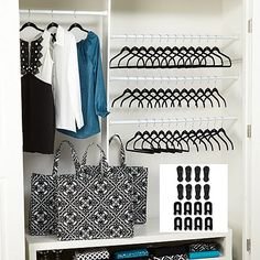 -. Feature : 36 Suit hangers, 36 Shirt hangers, 12 Ultra slim pant/skirt clips, 14 Cascading mini hooks, 2 Hooks, and Hanging Shoe Organizer / Hangers: Black with Brass, Approx. 17-1/2"L x 1/4"W x 9-3/4" / Shirt Hangers: Black with Brass, Approx. 16-1/2"L x 1/4"W x 9-3/16"H / Deep Ultra Slim Pant/Skirt Clips: Approx. 2-3/16"L x 7/8"W x 1"H / Cascading Mini Hooks: Approx. 11-1/2"L x 1"W x 1-1/2"H