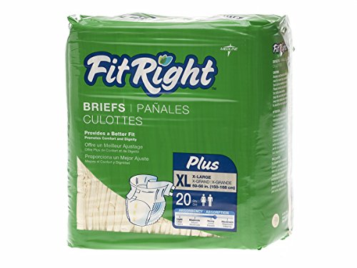 -. Title : FitRight Plus Adult Briefs with Tabs, Moderate Absorbency, X-Large, 57"-66", 4 packs of 20 (80 total)