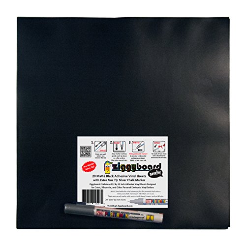 Create your own Ziggyboard labels, decals, decorations, stickers and more with Ziggyboard chalkboard material! This set is perfect for the crafter looking for a bundle of material to use with their personal vinyl cutters and an extra fine tip marker to be used for writing on stickers and a variety of other surfaces. Each order comes with twenty (20) sheets of Ziggyboard material and an Extra Fine 0.5mm Tip Silver Waterproof Zig Posterman chalk marker.