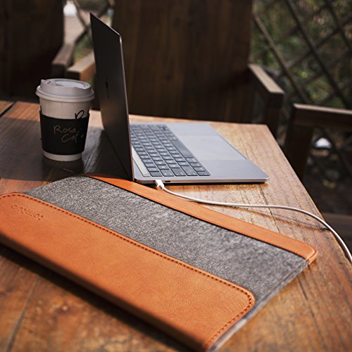 Tomtoc Ultra Slim 13 Inch New MacBook Pro 2016 | 12.9 Inch iPad Pro Sleeve Case [Felt & PU Leather] Laptop Protective Bag with Accessory Pocket - Classic