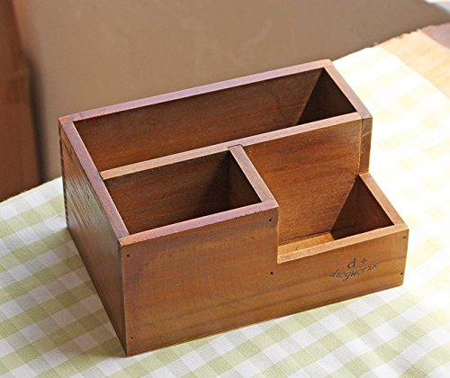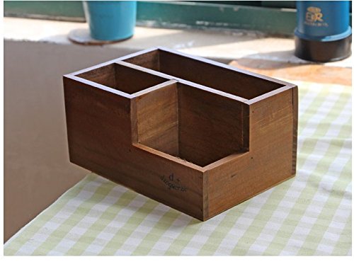 Classic 3 Compartment Brown Wood Desk Organizer/Plant Container Box/ Desktop Office Supply Caddy /Pen Holder /Mail Holder from Astra Gourmet