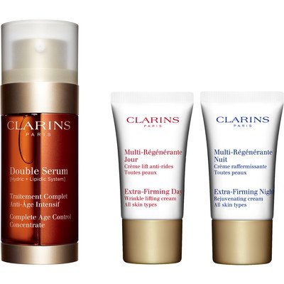 Clarins award-winning bestseller combines two age-defying formulas into one groundbreaking serum that supports skin's natural, vital functions.