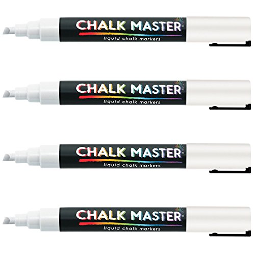 - Title : Chalkmaster® Liquid Chalk Markers - 4 Bright White Colored Liquid Chalk Premium Artist Quality Marker Pen Set + 2 FREE Additional 6 mm Reversible Chisel to Bullet Point Tips - 100% Guarantee