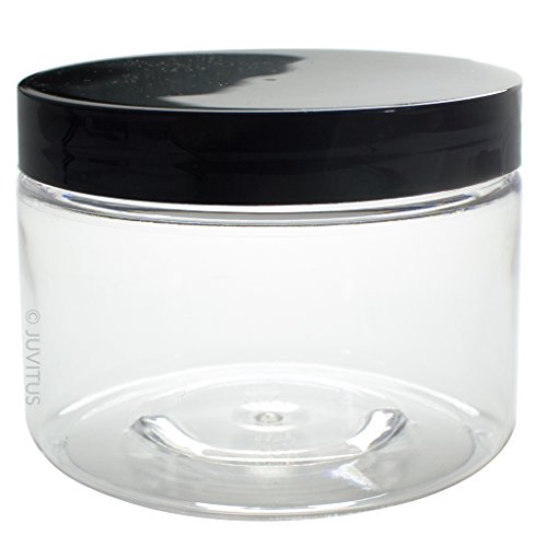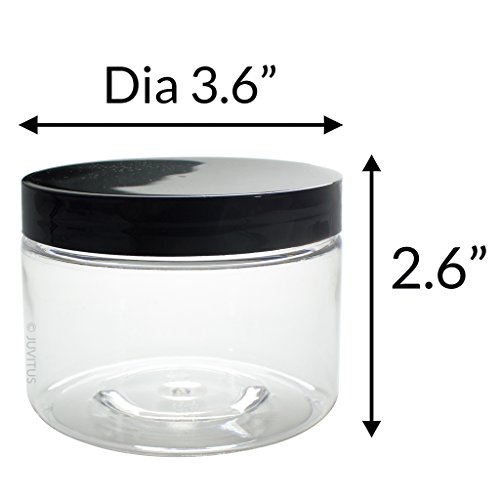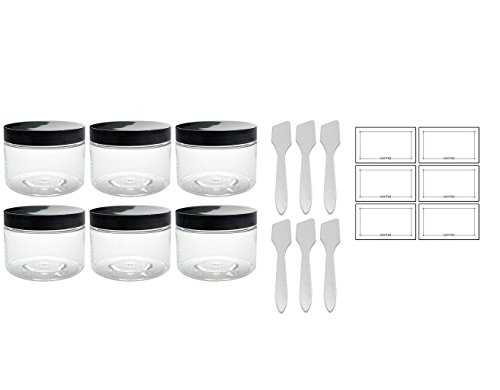 Clear PET Plastic (BPA Free) Refillable Low Profile Jar - 12 oz (6 pack) + Spatulas and Labels