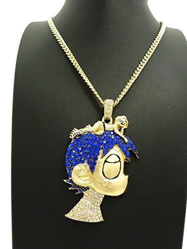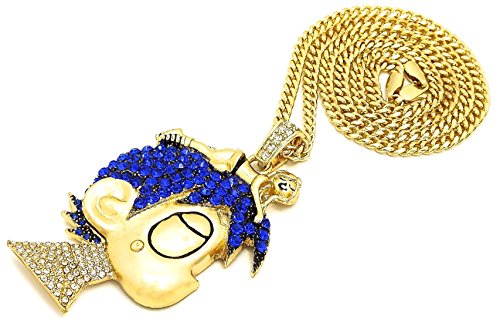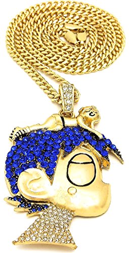-. Title : GWOOD L Uzi Cartoon Iced Out Pendant Necklace Gold Color Cuban Chain