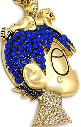 -. Feature : Pendant Measures 2 3//4 Inches Tall (W/O The Bail) By 2 Inches Wide / 24 Inch Long 4mm Wide Cuban Link Chain / Lobster Claw Clasp / Iced Out In Blue And Silver Clear Color Crystal Rhinestones / Guaranteed Satisfaction