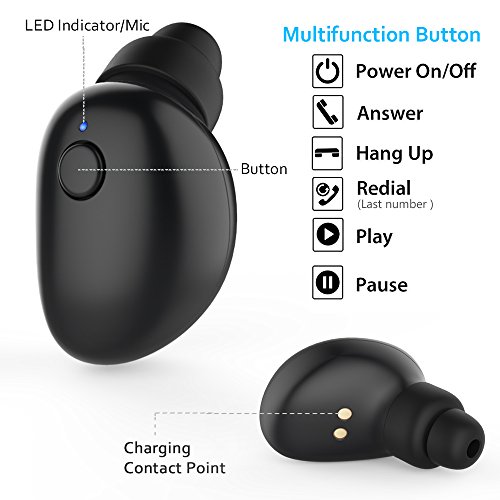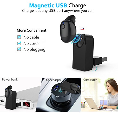 Bluetooth Earbuds, Comsoon [Magnetic USB Charger] Smallest Invisible Wireless Headphones In-ear Car Bluetooth Headset with Mic, 6 Hour Playtime for Bluetooth Devices - 1 Piece (gloss black)