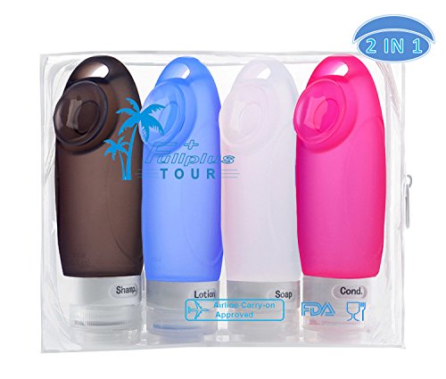 FullPlus TSA Approved Portable Silicone Travel Bottles Set with EVA Bag (3 oz,Pack of 4)