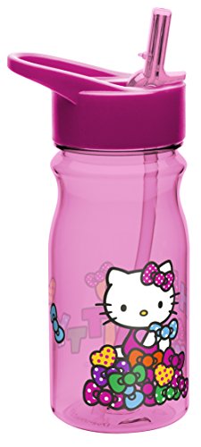 - 16.5-ounce water bottle with leak-proof lid and built-in carrying loop featuring Hello Kitty