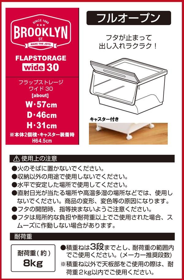 オールドアメリカのカラーを取り入れたオシャレな収納ケース。フタを開けたままで固定しておけるので、出し入れもラクラク♪付属のキャスターを取り付ければ移動時も便利です。 |