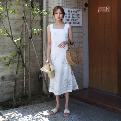 세련된 무드의 슬리브리스 원피스입니다. 심플하면서도 플라워 드로잉 패턴으로 포인트를 주었는데요. 스퀘어 네크라인과 바스트라인, 허리라인에 다트 처리를 해줘 여리한 실루엣으로 연출하기 좋았구요. 롱한 기장감이지만 옆에 적당한 트임이 있어 불편함 없이 활동할 수 있답니다. 백라인에 시크릿한 콘솔지퍼가 엉덩이까지 내려와 편하게 착용하기 좋더라구요. 안감이 있지만 살짝 비침이 있어 비침에 민감하신 분들은 스킨톤의 이너웨어 착용하는 걸 권장 드려요.