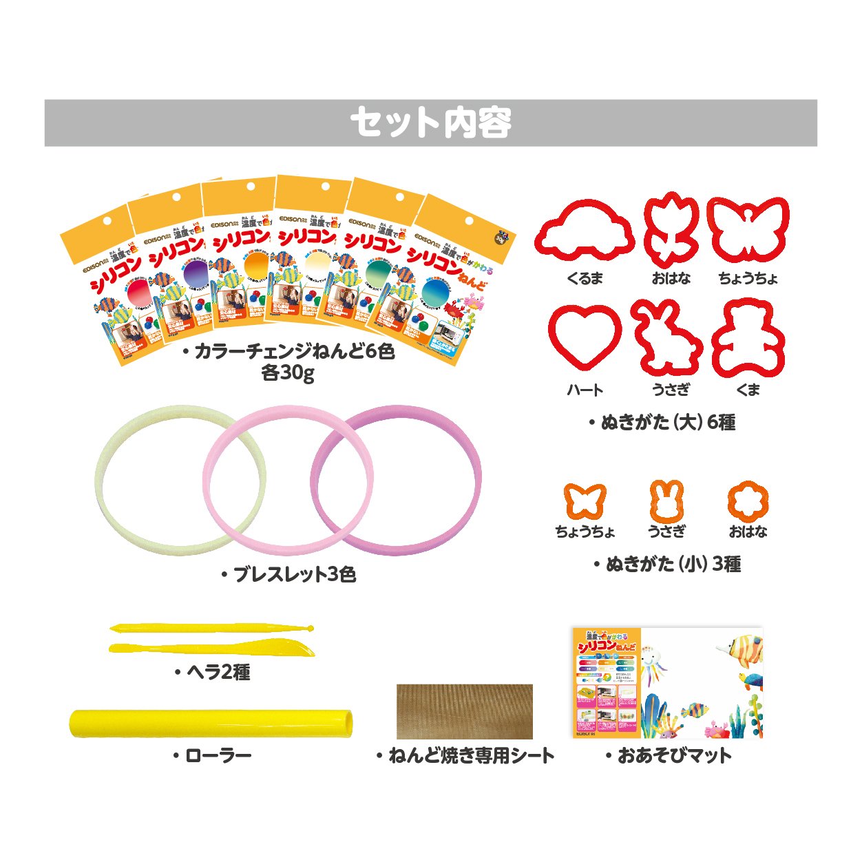 Includes: Color change Nenden 6 colors each 30 g · 2 spatula · 2 rollers · bracelets 3 colors · dedicated sheet for dandy baking · osawomatte · 6 kinds of nagagata (large), 3 kinds.