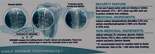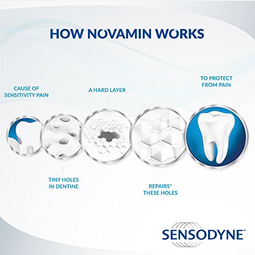 HELPS REPAIR TINY HOLES ON THE TEETH: Sensodyne uses NOVAMIN, an advanced technology featuring concentrated calcium and phosphate that helps repair holes to prevent twinges that cause tooth sensitivity.ur
