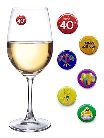 [Product Information]- CELEBRATE IN A CHARMING WAY! When shopping for 40th birthday party decorations don't forget to add these fun wine charms that work with two strong magnets to attach THROUGH any glass, even beer mugs!