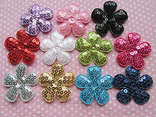 YYCRAFT Pack Of 55 Padded Felt 1.5" flower w/Sequin Appliques-11 colors