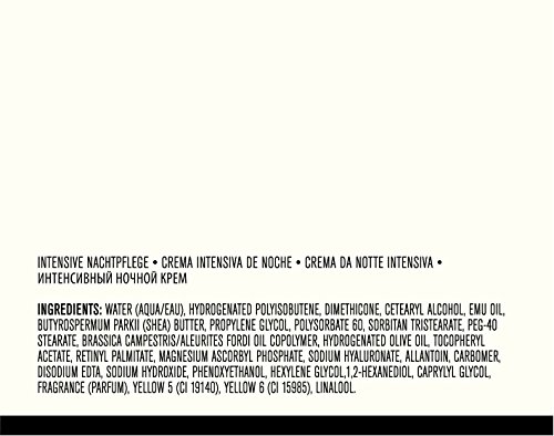 -. Feature : This ultra rich nighttime cream saturates skin with intense hydration. / Ultra-rich nighttime cream saturates skin with intense hydration. / This intensive moisturizing formula relieves and repairs skin overnight. / A specific combination of essential fatty acids and antioxidants soothes and heals the skin while it rests. Aids flaky, rough, severely dehydrated skin. / Penetrates deeply to soothe and restore skin's texture.