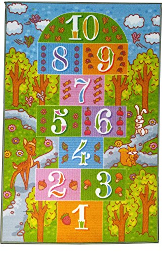 This colorful educational rug is perfect to teach your child how to count and the names of forest animals. Watch your child have endless fun with this hopscotch rug based in an animal forest.Feature