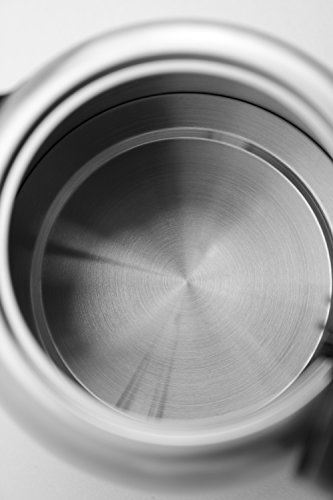 The kettle has a concealed water heating element, which not only looks much better than an exposed heating element, but it also prevents extra mineral build-up. This kettle features a flip-back lid for convenient filling, and a removable/washable spout filter to ensure the purest results. For safety purposes, it’s equipped with automatic shut-off upon boiling, and boil-dry protection which automatically shuts off the kettle when no water is in the carafe. Additionally, it comes with a secure locking lid, power on indicator light, a cool-touch button and comfortable stay-cool handle. It’s also easy to store—its 30 inch cord wraps neatly into its base.
